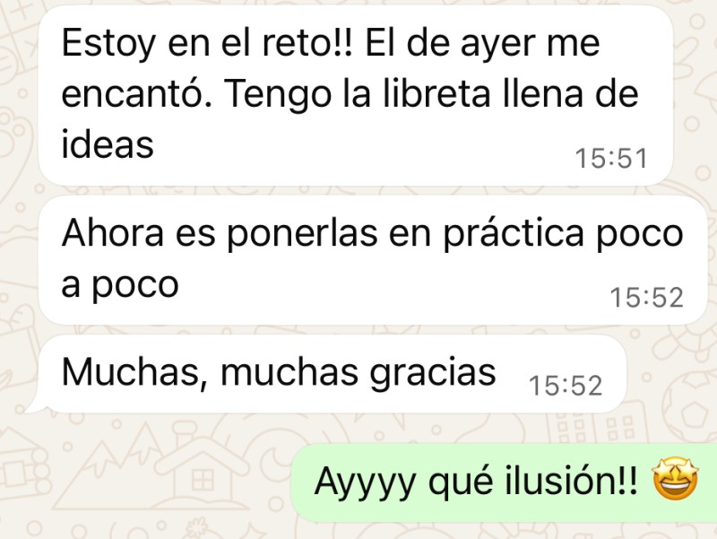 IMPORTANTE: Para participar en el reto tendrás que acceder a una comunidad de whatsapp.que hemos creado específica para el reto. Es totalmente segura y se mantendrá tu privacidad, ya que nadie podrá ver tu número. Allí estarás con tus compañeras.