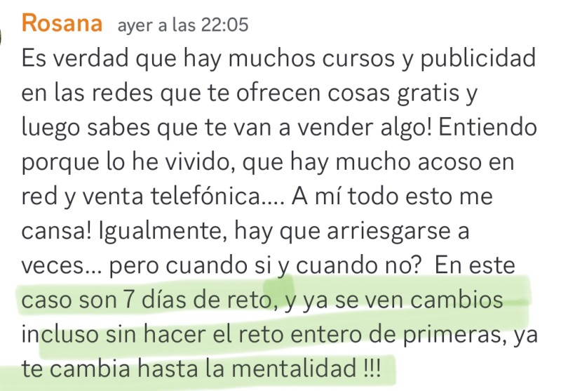 ¡El reto comienza ya! Accede ahora porque estamos compartiendo tips e ideas que te van a ayudar. El domingo 22 de febrero enviaremos el primer mini-vídeo y comenzaremos con el día 1. A diario a primera hora de la mañana iremos enviando cada vídeo grabado que podrás visualizar cuando tú decidas a lo largo del día. Esto lo haremos durante 6 días, y el sábado 28 de febrero a las 10:30h de la mañana, tendremos una masterclass en directo para completar el reto.