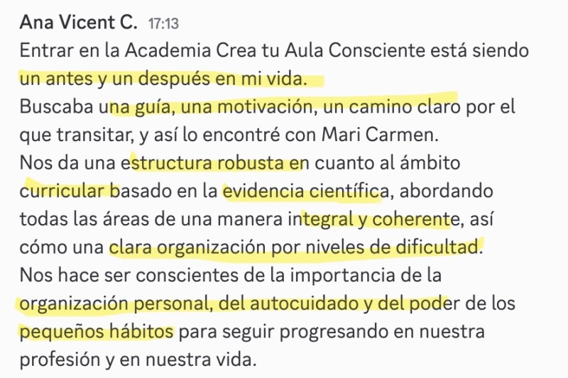 Es un sistema que ya ha sido testado con decenas de alumnas, y con un 100% de casos de éxito. Todas logran transformar su aula.