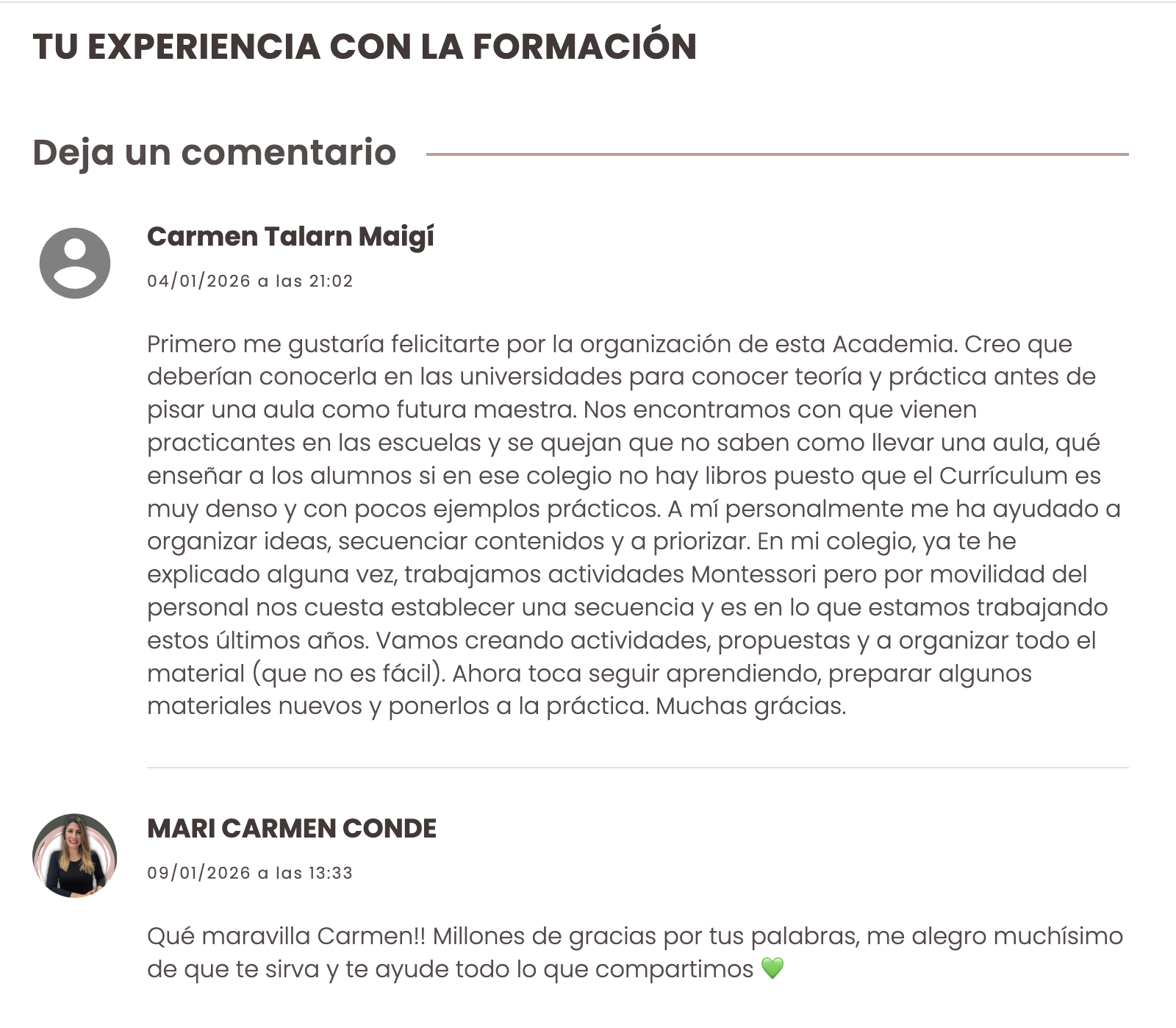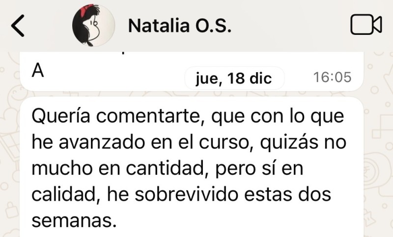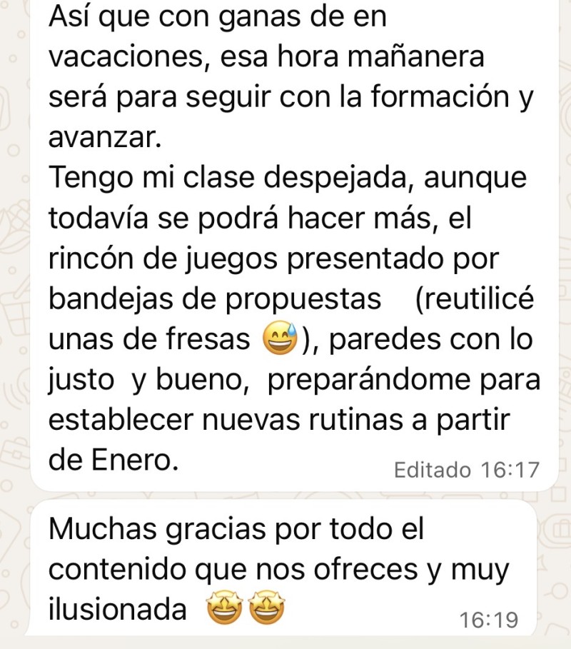 NATALIA, maestra de Infantil, después de 1 mes en el Programa. Actualmente cursando el Programa Completo Crea tu aula consciente.